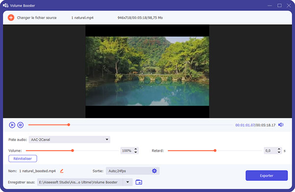 Étape 2. Si vous trouvez le volume de votre vidéo trop faible ou trop fort, vous pouvez utiliser Volume Booster pour régler le volume. Faites simplement glisser le point sur la barre pour augmenter/diminuer le volume selon vos besoins.