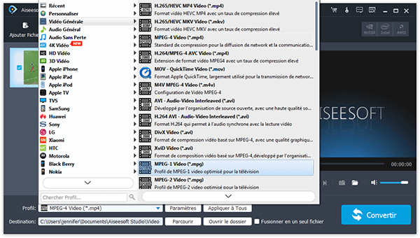 HD Vidéo Convertisseur vous permet de convertir n'importe quelle vidéo haute définition (y compris 4K) en SD, 720p/1080p HD et 4K en MP4, MOV, AVI, MKV, WMV et plus pour tout lecteur et logiciel de montage vidéo sans perte de qualité sous l'ordinateur Windows.