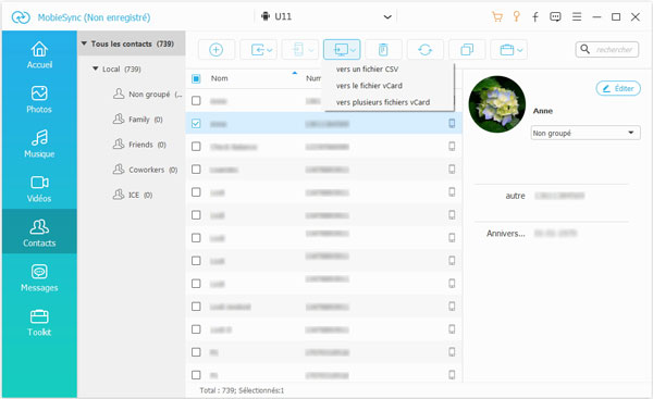 Vous pouvez sauvegarder tous les contacts de votre appareil Android/iOS sur ordinateur en un clic avec Aiseesoft MobieSync.