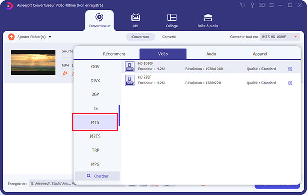 Convertir un fichier MP4 en MTS et éditer une vidéo ou audio avec Aiseesoft Convertisseur Vidéo Ultime en un clic.