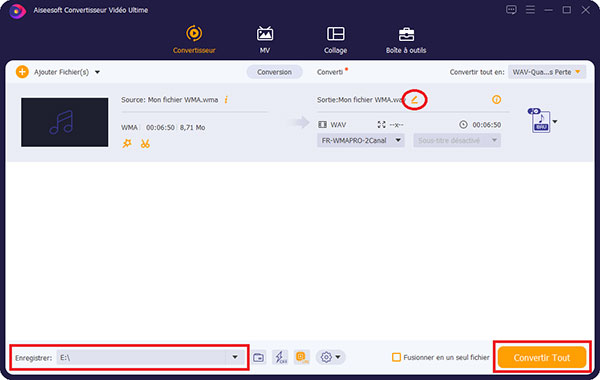 Convertir un fichier WMA en WAV et éditer une vidéo ou audio avec Aiseesoft Convertisseur Vidéo Ultime en un clic.