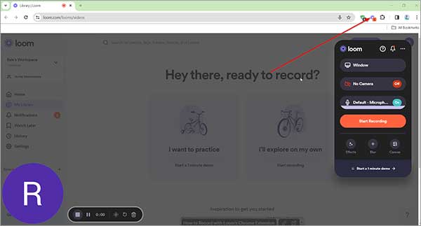 Identifiez et cliquez sur l'icône de Loom à partir la liste d'extension de votre navigateur.