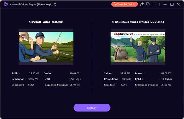 Aiseesoft Video Repair est un logiciel professionnel qui permet de réparer facilement les vidéos corrompues, endommagé ou illisible. Grâce à une technologie avancée, il restaure les données manquantes dans les vidéos endommagées, préservant ainsi leur qualité d'origine. L'outil se base sur une vidéo de référence pour réparer la vidéo corrompue et restaurer la même résolution, fréquence d'images et débit binaire que la vidéo de référence.