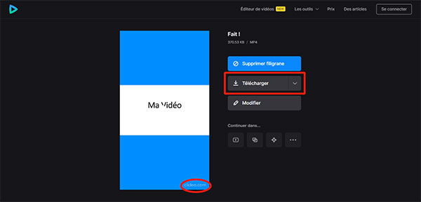 Vous pouvez revenir à la page précédente avec le bouton "Modifier". Mais si tout vous convient, alors cliquez sur "Télécharger" pour sauvegarder le nouveau fichier localement ou sur un cloud distant.