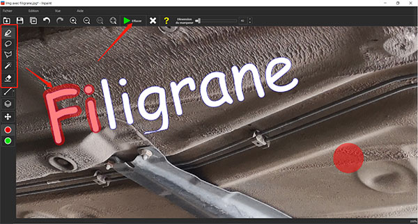 Dessinez une zone autour du filigrane. Puis pressez le bouton Supprimer.