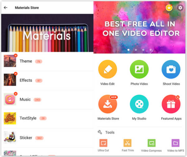 VideoShow est une application gratuite de montage vidéo Android avec l'interface attrayante et le fonctionnement strict.
