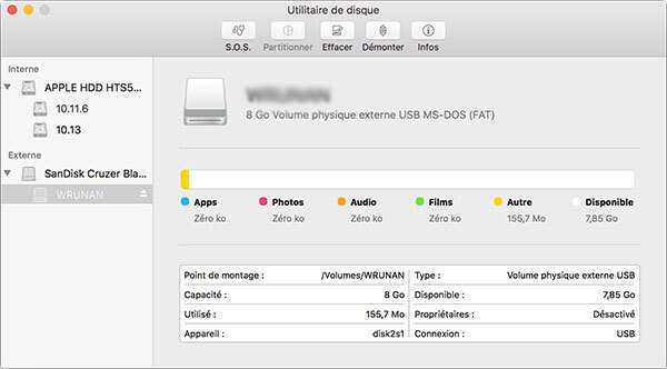 Un autre moyen de vider la clé USB est de la formater sur Mac, suivez le tutoriel.