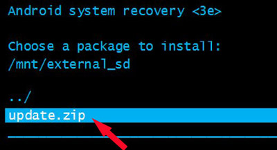 Et puis appuyez sur le bouton d'alimentation pour sélectionner le fichier de la mise à jour « update.zip ». Appuyez sur le bouton d'alimentation pour commencer le processus de récupération.