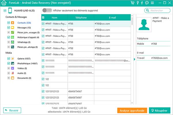 Tous les contacts supprimés sur Samsung vont être figurés sur la fenêtre. Sélectionnez lequel vous voulez visionner, tout le détail de ce contact peut être montré dans la colonne à droite.