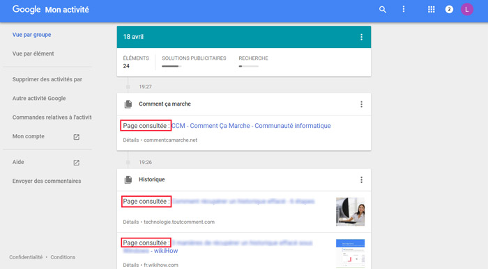 Étape 2 Vous pouvez facilement trouver la liste des sites que vous avez visités sur la page. Il offre deux options d'affichage pour votre historique : Vue par groupe ou Vue par élément. Vous pouvez choisir celui qui répond mieux à votre besoin.
