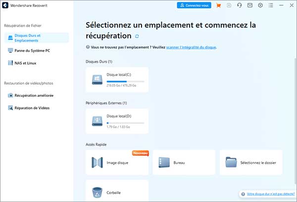 Partie 2. Comment récupérer des fichiers supprimés avec Wondershare Recoverit ?